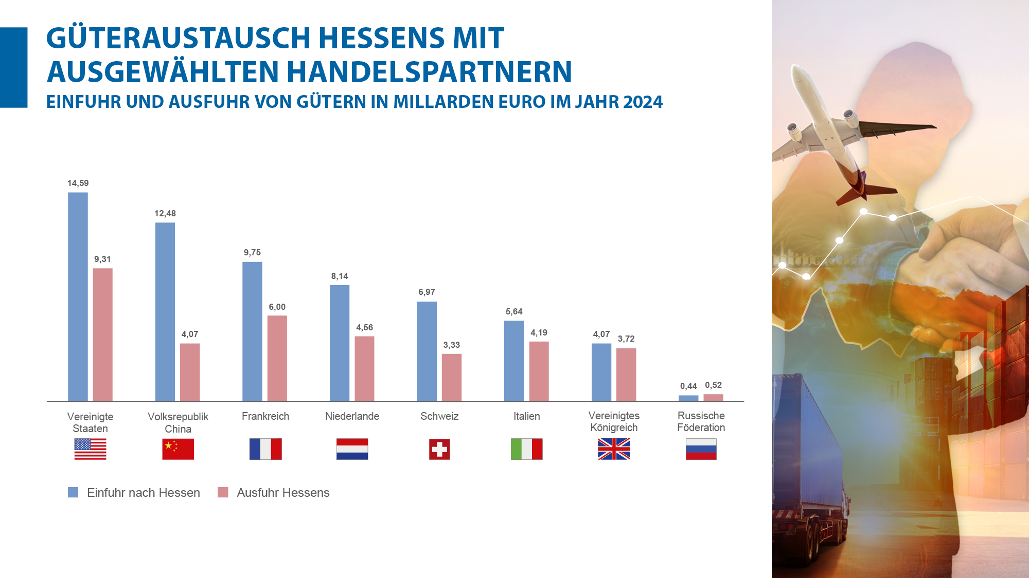 Güteraustausch Hessens mit ausgewählten Handelspartnern 2024