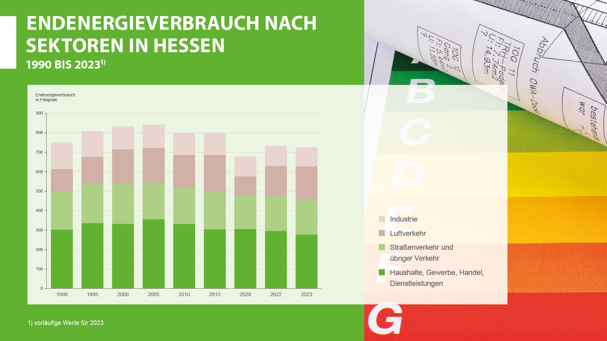Energie Endenergieverbrauch nach Sektoren in Hessen Logo - Auf Facebook teilen Öffnet sich in einem neuen Fenster Logo - Auf X teilen Öffnet sich in einem neuen Fenster Logo - Auf LinkedIn teilen Öffnet sich in einem neuen Fenster Logo - Auf Xing teilen Öffnet sich in einem neuen Fenster Logo - Auf E-Mail teilen Öffnet sich in einem neuen Fenster Logo -Drucken © Hessisches Statistisches Landesamt, 2026 | stock.adobe.com | johannesspreter Vervielfältigung und Verbreitung, auch auszugsweise, mit Quellenangabe gestattet. Bild in Originalgröße herunterladen Zurück Schlagworte zum Thema Energie Industrie Verkehr Verbrauch Haushalte Gewerbe Handel