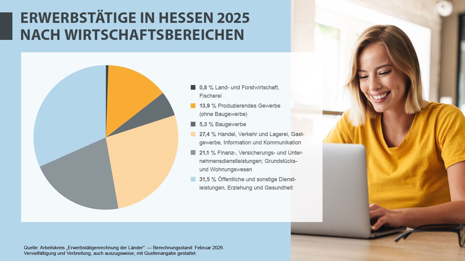 Erwerbstätige am Arbeitsort in Hessen nach Wirtschaftsbereichen